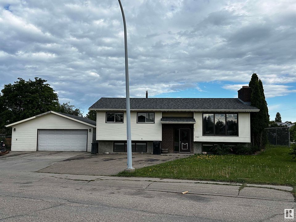 This fully developed 5 bed bi-level offers a great location near shopping all amenities including shopping, parks, and walking paths! A wood burning fireplace in the living room upstairs serves as great focal point. The kitchen features lots of cabinetry and counter space. The patio door leads to a wrap around wood deck great for entertaining and summer BBQ's. The master bedroom includes a 2 piece ensuite. Downstairs one finds a SECOND KITCHEN and living room along with the 4th & 5th bedrooms a second 4 piece bath. The home has newer flooring along with a high efficiency furnace and a newer HWT. The double detached garage is great in that it's heated and oversized at 26x28. The lot is large enough to accomodate RV and is located just steps from Drayton Valley's largest park (MacKenzie Park).