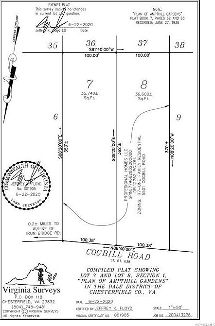 Looking for land in a great location in Chesterfield? This flat and wooded 0.84 acre lot is ready for you! Located just minutes from Chesterfield schools, groceries, sports complexes & restaurants! Less than 3 miles from 288, Chippenham & Chesterfield Courthouse! Plenty of frontage on a state maintained road! This lot was just divided, so the county assessment is not accurate. 5509 Cogbill Road is also for sale for 35k. Buy both and have 1.6+ acres to yourself! It's getting hard to find this much land in close-in Chesterfield! The seller makes no representations or warranties for this property.
