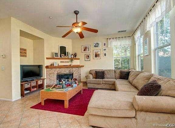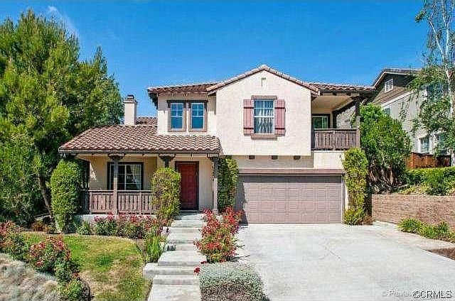 Premier 4-bedroom (plus loft/bonus room) home, located on a very private, oversized premium lot within Ridgemore. Approx 2500 Sq. ft of open, functional living space. One bedroom w/full bathroom downstairs. Spacious kitchen with center island and bar seating. Family room w/ stone fireplace and sliding doors to backyard. Three bedrooms, plus loft, upstairs. Large master suite with vaulted ceilings. Central A/C. Amazing backyard, backing to the canyon and hills with nice views. Very private and tranquil feeling in backyard. No Mello-roos. Direct access to 2-car garage. Walking distance to the HOA pool/spa and the award winning schools of Forster Ranch!