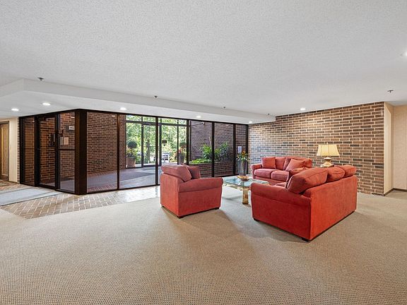 Highly desirable top floor condo unit in the tranquil Dewey Hill East Condo Building! Live in the heart of Edina, with easy access to everything Edina has to offer, while also being tucked away in a beautifully wooded, serene setting. This special unit immediately welcomes you with a bright, light-filled entry way with skylight and vaulted ceiling. You will enjoy the 3 season porch that overlooks the courtyard and fountains. Lots of extra storage potential on the 3 season porch with the helpful metal shelving system. The kitchen has bartop seating, abundant cabinet space, and gorgeous updated finishes. Seller removed half a wall by the sink, to flood more light into the kitchen, and to provide a more open feel into the dining room. The laundry room with newer washer/dryer are located on the main level, adjacent to the kitchen. All new carpet throughout the unit! You will also enjoy many building amenities including: large community room with kitchen, library, and access to spacious outdoor terrace overlooking the courtyard. In the lower level you will find a heated, indoor pool, jacuzzi, and gym. In the heated parking garage level, you will have access to a huge woodshop to fulfill all your woodworking hobbies. On the roof is a small greenhouse for those with a green thumb. This building is exceedingly well-maintained and offers an on-site property manager. Snap up this Edina condo for the easy, turn-key lifestyle while you can!