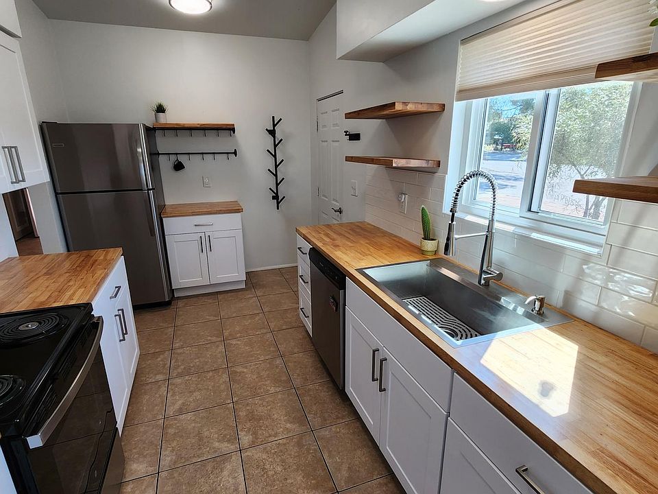Large beautiful 2 bedroom, 1 bathroom brick house in Tucson. Located on a corner lot of a nice neighborhood close to Park Place Mall, Costco, Tucson Medical Center, Bike Boulevard and many others. Amenities included: central air, dishwasher, brand new stainless steel appliances, updated kitchen with goose neck faucet, butcher block counters and floating shelves, tile floors, extra storage, new washer and dryer, large yard and covered parking. No Utilities included. Pet friendly with no restrictions on breeds. Date Available: Mar 13th 2023. $1,445/month rent. $1,445 security deposit required. Please submit the form on this page or message me for a link to apply or schedule a showing.