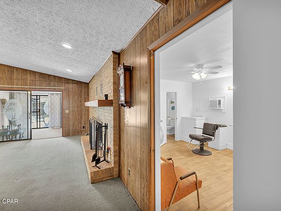Just five blocks from the sugar-white sands of Panama City Beach and within walking distance to the lagoon and a public boat ramp, 5501 Lagoon Way offers a unique opportunity in a prime coastal location. This 3-bedroom, 2-bathroom home features a flex space off the Florida room, ideal for a home office, playroom, or hobby area. Originally a 2-bedroom, 1-bath layout, the home was expanded to include a third bedroom and second full bathroom through a garage conversion that was previously used as a private beauty salon. A wood-burning fireplace adds charm to the main living area, and while the home showcases a vintage design, several major system upgrades have been completed. Recent improvements include storm-rated double-pane vinyl windows installed in 2024, a roof replacement in 2019, and updated wood siding on the back of the home in 2022 with new base trim around the entire exterior. The HVAC system was replaced around 2019, and the Whirlpool water heater, 2022 stainless steel LG refrigerator, and 2021 Samsung front-load washer and dryer offer modern comfort and efficiency. The addition was fully insulated, and the home is located in Flood Zone X. The septic system is situated in the front yard for easy access. All information is deemed reliable but not guaranteed. Buyer to verify all information.