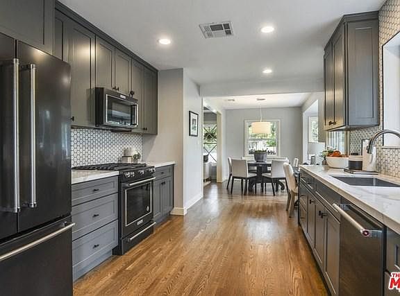 Beautiful home located in great Valley Village neighborhood! This 3-bedroom, 3-bath residence has been meticulously remodeled from top to bottom with notes of style and elegance. Recent upgrades include refinished oak hardwood floors throughout, an incredible open dining room, completely re-done open concept chef's kitchen with designer lighting fixtures, quartz countertops, a custom backsplash, brand-new Kitchen-Aid black stainless steel appliances and new custom Shaker cabinets. Newly constructed master suite includes a new spa-style bathroom, complete with custom tile, rain shower, designer vanity and lighting features and large walk in closet. Additional upgrades include: new roof, new 200 Amp electrical service panel with new electrical wiring through out the home, brand new HVAC with Nest thermostats , 2 additional fully remodeled spa style bathrooms, both with custom vanity, designer mirrors and newly tiled showers. Great location, close to freeways. No garage. Outdoor parking on and off property.