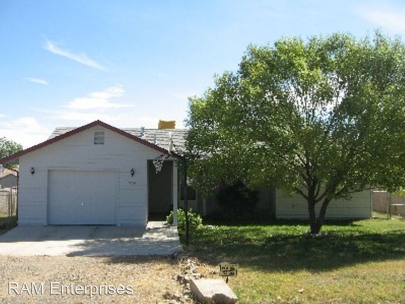 GREAT HOUSE IN PRESCOTT VALLEY W/ LARGE FENCED BACKYARD!! - 3 bedroom, 2 bathroom 1 car garage house. Large fenced backyard. Pricing is for a 1 yr. lease / 6 month lease is an additional $50.00 per month. All utilities are tenants responsibility. No HOA. Linoleum flooring in the kitchen and dining room. Wood laminate flooring throughout the rest of the house. Pet policy is CWO ( check with owner ) with an additional security deposit equal to 1/2 months rent due at move in. Gas stove, refrigerator, dishwasher, garbage disposer, washer and dryer included. (Washer/Dryer will not be repaired of replaced by either Owner or Ram Enterprises). F/A gas heat and Evaporative cooling unit. Telephone and cable TV hook ups. Students - CWO. Built in 1993. No fireplace. No smoking in this unit. Directions from RAM office: East on W. Gurley St. to HWY 69 towards Prescott Valley. Left on Robert Rd., left on Tranquil, right on Ramada, right on Wickiup, left on N. Poke Dr. Located on a Cul-de-sac. (RLNE2708313)