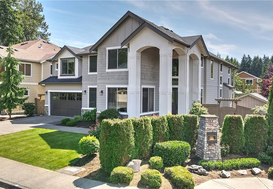 Exceptional luxe quality, details, and touches highlight this home with beautiful lush curb appeal located on a corner lot. New fresh interior/exterior paint and new carpet. Extensive millwork, wood wrapped windows, 8 foot tall solid core doors on the main, and hardwood flooring throughout. Spacious kitchen with a large granite slab island, stainless steel appliances including a Jenn-Air Pro 48" range, wet bar with wine beverage cooler, and wood cabinetry with plenty of storage. Kitchen opens to living area with a soaring gas fireplace; makes it perfect for entertaining. Grand stair case leads to the bedrooms. Luxurious master suite with a sitting area, gas fireplace, 5-piece bath with corner jetted tub and large walk-in closet. Other features include ceiling fans, security system, pre-wired for a home theater/media room, and skylights bring in lots of natural lighting. Nice covered patio with a fenced yard to enjoy summer BBQ's. Close to schools, restaurants, shopping, parks, and only 10 min from I-405.