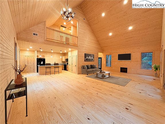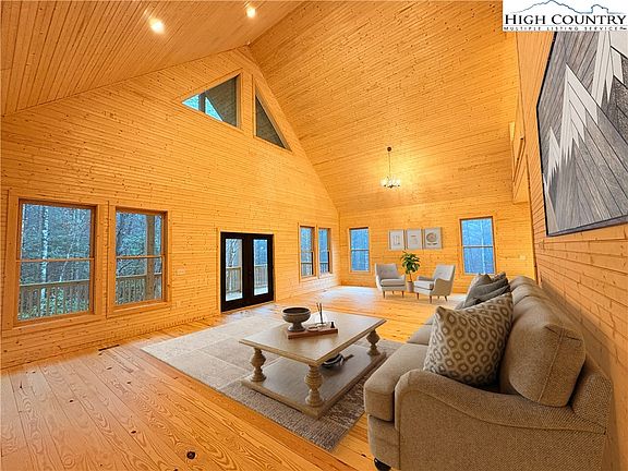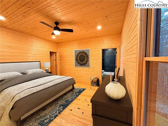 PRICE REDUCED! A newly constructed 3-bedroom, 3.5-bath cabin at The Bluffs at Wilson Creek combines modern luxury with rustic charm. The home features stunning tongue-and-groove walls and ceilings, black accents, a gas fireplace, and wood cabinetry with granite countertops. The open floorplan, with a two-story vaulted ceiling in the family room, creates a spacious and inviting atmosphere for entertaining. Two large wood decks extend the living space outdoors, good for relaxing or wildlife viewing. The fully furnished basement with an exit door offers versatile additional space for a game room, home theater, or additional living space. Situated on 6+- acres, this secluded cabin is the perfect blend of comfort, style, and tranquility, offering an ideal escape or year-round residence. Wilson Creek borders the property line just across Adako Road.