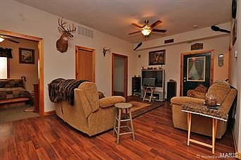 42+/- great hunting acres with 60x40 building with a 2 bedroom, 1 full bath living room, kitchen and all furniture staying. All kitchen appliances staying plus washer and dryer, 2 car garage area, central A/C and electric heat, open floor plan, shows great! Approximately 7/8 miles from I-55 in the Bloomsdale area but Festus address and located in St. Francois County. PLEASE NOTE: PROPERTY IS IN STE. GENEVIEVE SCHOOLS! Great hunting home, get away, a man cave or live year round!