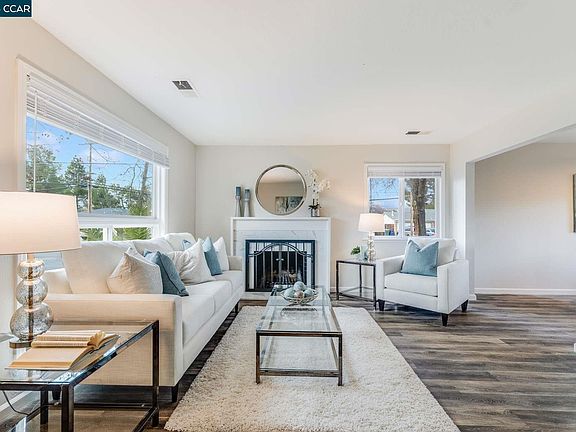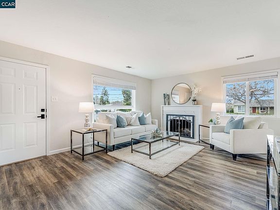 Clayton Valley rancher recently updated. New kitchen with upgraded white shaker cabinets, New LG stainless steel appliances and Carrera Quartz counters. Freshly painted exterior and interior in warm earthtones. Vinyl plank flooring throughout except for one bedroom that has new carpeting. Updated master and hall bathrooms. New light fixtures through out. Dual pane windows with new 2 inch blinds throughout. Open living room with matching Carrera Quartz faced fireplace. Fresh rear yard landscaping with new sod, perimeter plantings and river rock. Central heat and air. Large corner lot with some new fencing.