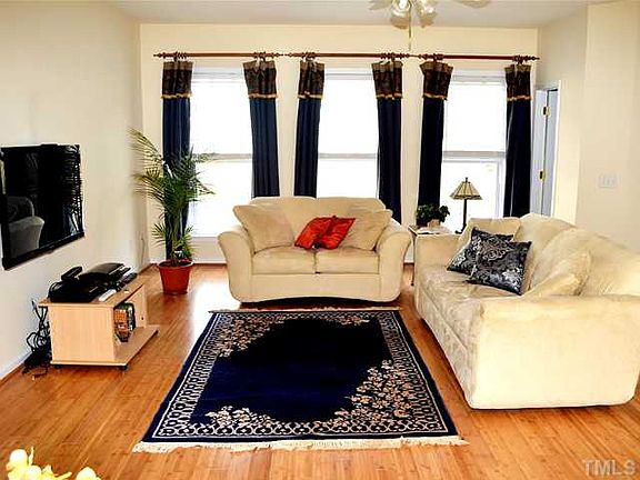 Former model home with new bamboo floors. Custom window treatments and decorative touches throughout. Master suite has vaulted ceiling and double doors to bath with dual vanities. Pinecrest neighborhood convenient to I-540 and RDU.