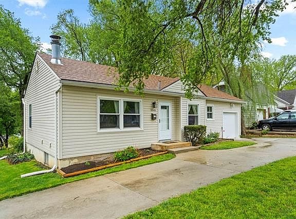 Your Roeland Park charmer awaits! Bring your design ideas and make this well-cared for home your dream home! This ranch home showcases an open floor-plan with 2 spacious bedrooms, and a remodeled bathroom that shines with new fixtures, vanity, and deep tub. The larger kitchen has a builtin stove, a cooktop, plenty of cabinets and counter top space with bar seating. Enjoying all summer outside on the oversized deck perfect for entertaining and grilling. The deep garage also features an overhead shelving area for extra storage. Newer paved circle drive has access from both corners. Many exterior updates include newer roof, garage door and opener, drive way, newer front and back doors, replacement of the water line from the street, sewer line, replaced siding, front facing windows, gutters and so much more!!