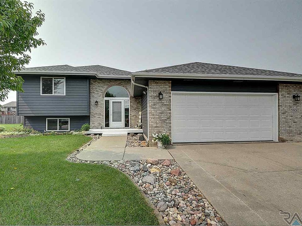 Fantastic 4 bed, 2 bath home located in popular SW Sioux Falls. Upon entry you are greeted with a large foyer & vaulted ceilings allowing for natural light to fill the living spaces while arched doorways carry you from room to room. Eat-in, updated kitchen features new back-splash, counter tops & laminate flooring (all 2014) plus abundant cabinet space, along with convenient slider to deck. New carpet (2014) covers both the large upper living and lower family room areas, while tasteful colors coat the walls. Two bedrooms in the upper level including the master. Family room also features mini kitchenette. Remaining two bedrooms complete the lower level. Both baths feature new flooring (2014). Home is wired for surround sound. Exterior offers new shingles & paint (2014). Nicely landscaped backyard with garden area features privacy fence and brick paver area perfect for entertaining. Over-sized double garage, with additional concrete pad, allows for all of your extra storage needs.
