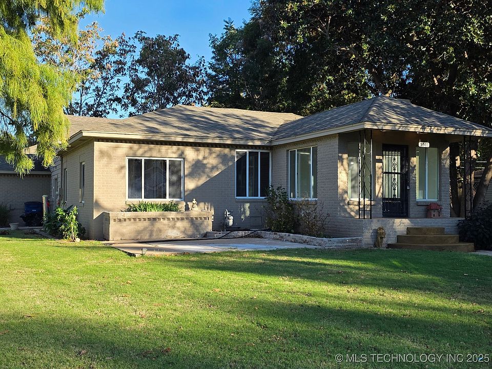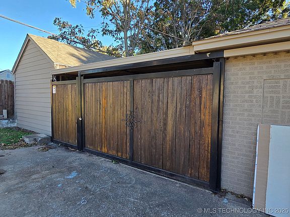 Set on over 1/3 acre (ch), this character-rich brick home offers 2,119 square feet (ch) of flexible living space, thoughtful design, and exciting possibilities. Walking distance to Brookside & Riverside. Featuring 2 bedrooms and 1.5 baths, the layout easily accommodates a third bedroom conversion. Upon entry, you're welcomed by a tiled sunroom that opens into a spacious living room adorned with original hardwood floors, a cozy fireplace, and abundant natural light. The kitchen showcases exposed brick, a pantry, and a delightful window flower box, with an adjacent dining area perfect for entertaining. A bright den with backyard views offers versatile use—ideal as a second living space or easily transformed into a generous primary suite. The current primary bedroom includes new carpet and a walk-in closet, while the guest bedroom features durable hard-surface flooring. Additional highlights include an unfinished game room with vaulted ceilings and space for a bar—ready to become your dream entertainment zone; a detached garage apartment with 1 bed and 1 bath—finish it out for rental income or guest accommodations! A two-car carport is included with a gate and has access to an 11x20 workshop. The spacious backyard has mature trees, a koi pond, and both front and back patios for outdoor enjoyment. This corner-lot gem blends charm, functionality, and investment potential—all in one. You are also only minutes to the trails of Riverside or the shopping on Brookside and only a 5 min drive to the Gathering Place! Schedule your private tour today!