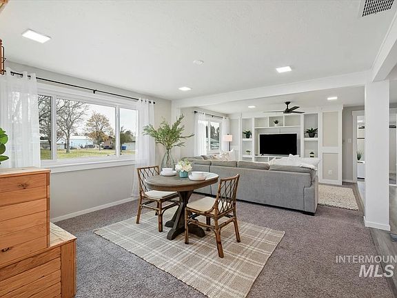 Located in a country setting with sprawling acre lots and quiet, wide streets- this beautiful 4 bedroom, 2 bath home is well maintained and has modern farmhouse touches like shiplap walls and charming built-ins. Enjoy an open concept living space where the living room, dining and kitchen are all connected, great for entertaining and three of the four rooms are located away from the master bedroom for extra privacy. The spacious master bedroom has a huge walk-in-closet and opens to the backyard. This .9 acre lot has a huge grassy area, a 12 x 10 shed, garden beds, a large pergola and charming playground. This incredible property has endless possibilities with NO HOA to limit your imagination. Zoning allows for farm animals and is the right amount of land to offer plenty of space, without being overwhelming. Other features include a step-down bonus room and a utility storage area off the driveway. Situated in a quiet rural setting, yet just minutes from Costco and shopping. Close to Downtown Boise and BSU.