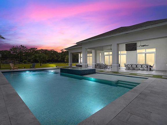 Remarkable Newly Built Modern Estate on 2.5-Acres! Oak-lined paver driveway leads to motor courtyard & statuesque home w/soaring ceilings. Contemporary supersized space galore from the Great Room to the Primary Suite w/Safe-rm to the Ensuites to the dual Patios, resort-styled Pool/Spa/Shelves & full-Summer Kitchen spaces to the Grounds. The finest of custom finishes include 15' tray ceilings, 6" Base, 8' solid wood Doors, Assura Impact Windows/Doors, motorized Blinds, #10-zoned Camera Sec System, LED lighting pkg reflecting over porcelain floor. Gourmet Kitchen fit for the Family Chef features S/S appl pkg amongst white maple wood thermofoil cabinetry w/under cab-lighting enhancing rich charcoal granite tops & functional center island w/ pop-up outlets. 48KW Gen, Solar Gate, Playground, +!