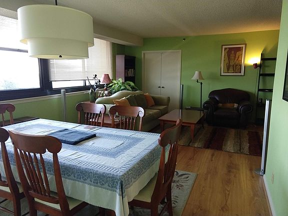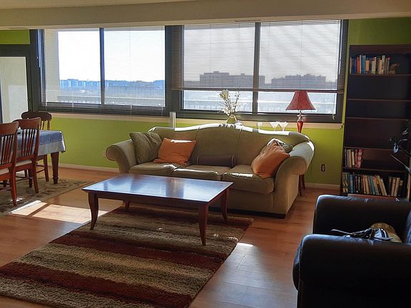 Spacious (1303 Sq Ft) bright condo on the 9th floor with unobstructed views. The unit faces South and enjoys all day sunlight. The condo is in a great location, walking distance to stores/restaurants and several metro bus lines running through the community. It's also a short Uber ride away from downtown or Reagan National Airport. The condo complex has a 24 hour front desk reception, gym with sauna and steam room, a billiards room, library, and a large outdoor pool. The condo is leased furnished (as shown in the pictures). Rental includes two reserved garage parking spaces. Maximum occupancy is 3 people per Condominium Association bylaws. Renter pays for electricity and cable/internet. There is a one time move in fee of $300 to be paid to the management office. Please note per Condo Association bylaws the maximum occupancy is 3 persons.