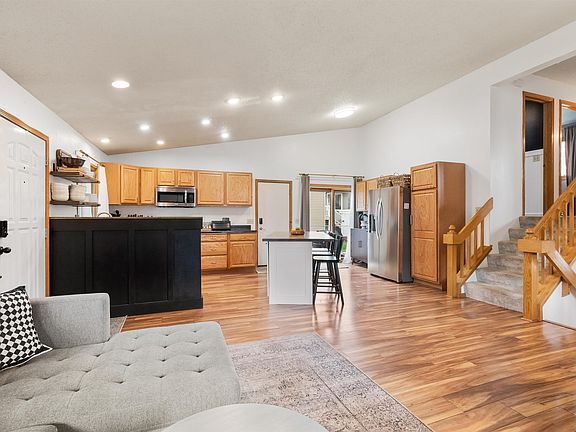 This home is a real breath-taker! Conveniently located on the west side, this house is bound to impress! The main floor boast a soaring vaulted ceiling with a freshly renovated kitchen complete with island, formal dining space and coffee bar! The upper level is complete with a spacious master bedroom, guest bed and bathroom. The lower level features a spacious entertaining area complete with tastefully done accent wall. The two-stall garage is oversized and features 2 service doors and attic space storage! The backyard is beautifully landscaped with patio and the yard is fully fenced in! Don't miss the chance to see it for yourself today!