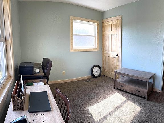 This is a must see! 3 bedroom, one bath, 2 car garage with plenty of yard. Newer appliances, flooring, doors, closet doors, bathroom is larger than most in this area and has room for the washer and dryer, nice big closet in the bathroom as well. This property comes with a big wooden shed with 2 lofts for plenty of storage, a raised garden bed and where you see the straw in the back is asparagus !!! Very convent to be across the street from the elementary school. Come check this one out!! All room measurements are approximate. Kitchen island does not stay.
