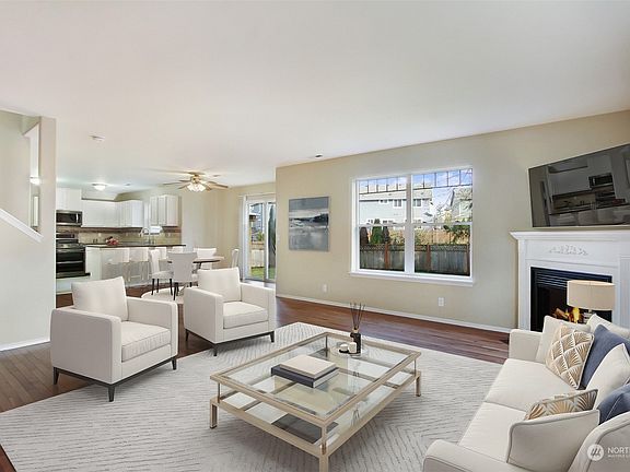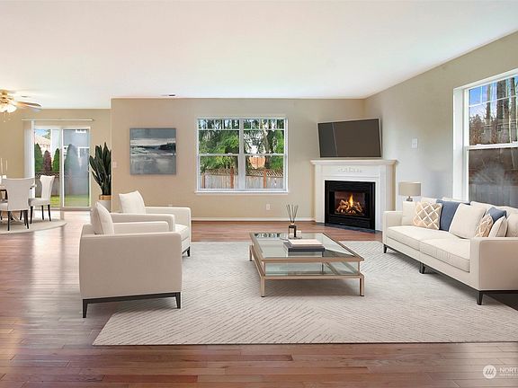 Your private oasis awaits just minutes from Silver Lake. Soak in the contemporary colors, beautiful h/w floors, elegantly appointed floorplan with formal living / dining spaces, & centerpiece kitchen ideal for entertaining. Upstairs boasts a spacious 2nd bonus living area, oversized Primary Suite w/ partial Cascade Mountain views, tile bath, & huge walk-in closet, 3 more BD's, & a bonus workspace area. Versatile floorplan is ideal for multiple lifestyles. Outside enjoy the custom covered patio, perfect for year-round use. The large fully-fenced yard awaits your custom touches just in time for spring. Protected Greenbelt next door provides privacy & tranquility rarely found in homes today. New roof. A must see!