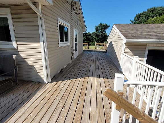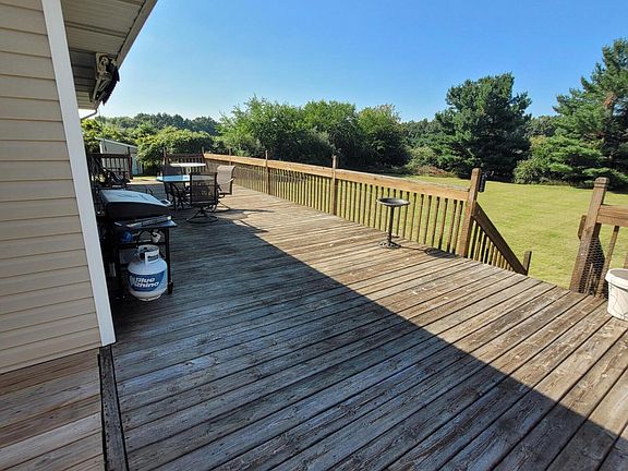 Country living at it's finest while still being close to the amenities of town! This 3 bedroom 2 bathroom home sits on 3.5 acres back off the road. You must use the private drive to access. Enjoy relaxing on the wrap around deck watching wildlife in your back yard! This home has been well maintained with newer windows, skylights in the kitchen and livingroom, lots of storage. And a full finished basement that has a built in bar setup! Perfect for entertaining! Outside there is a 2 car garage with added storage space on the back to make storing your outside equipment very easy. Don't miss your chance with this beauty! Schedule your showing today!