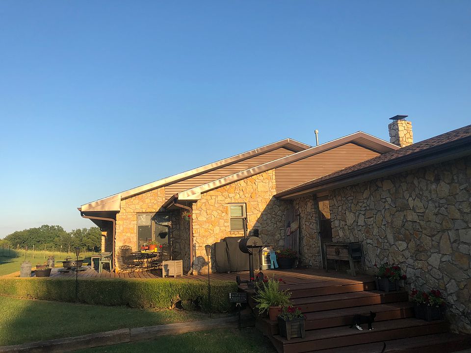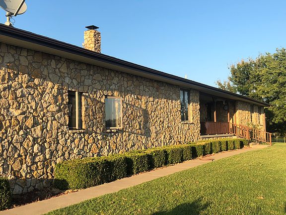 Rock 3 bedroom ranch style home on 20 acres, with oversized two car garage. Two barns with electricity and cattle pens.