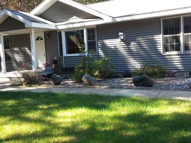HWY K CONOVER RANCH HOME - Picture yourself in the sunroom on five pine studded acres of Northwoods property. The deer are eating just outside your window. Peaceful serenity in a spacious 3BR/2BA home with master suite and split floor plan. The basement is a full basement and not finished but can be made into workshop, den etc. 1500 square feet of space in lower level. Basement is stubbed in for additional bathroom also. The home has an open concept kitchen and dining room w/ lots of cabinet space, nice appliances and a great work area. A laundry room is off the kitchen which is easy to manage. No stairs to climb. An insulated drywalled garage with two large doors is attached and great for additional storage. Location off the road is very private with a winding driveway and pines along both sides as you arrive at your getaway retreat. This home has been kept in perfect condition and has vinyl siding for easy upkeep. You must see this one!