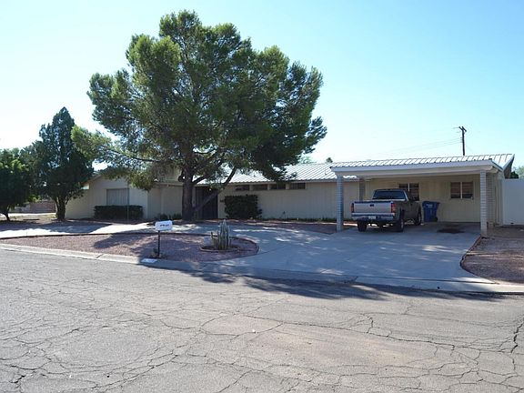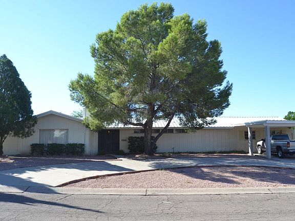 First time on the market in nearly 30 yrs. This masonry home has a highly flexible floor plan that can be adjusted to a 5 BR. Each br and main room has large sliding glass doors. The spacious kitchen opens to a large family room and formal dinning area, the separate living is very large and features a fireplace and North facing picture window. The master suite has newly installed wood floors and a large bath. The two full hall baths feature 1950's vintage tile adding to the charm of the home. The large walled yard has alley access, an expansive covered patio, and lots of privacy. The front of the home has a circle drive, a two car carport, and a vehicle gate at the side of the home allows access to three car port spaces with easy access to the 2 large work shops and yard.