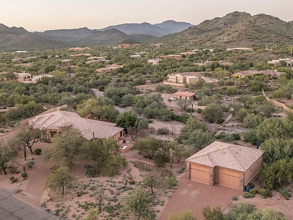 Nestled on over 2.3 acres of breathtaking property with panoramic mountain and desert views, this exceptional home offers the perfect blend of luxury, comfort, and functionality. Featuring 3 spacious bedrooms and 2.5 baths, with two living areas plus formal dining, the residence boasts a 3-car attached garage plus an impressive detached 40x50-ft garage—ideal for car enthusiasts, hobbyists, or extra storage. The gourmet kitchen is a chef's dream, complete with granite countertops, stainless steel appliances including double wall ovens plus a built-in microwave, a large island with breakfast bar, and a wet bar for effortless entertaining. Cozy fireplaces warm both the family room and the serene primary suite, which also includes custom built-ins in the walk-in closet. Step outside to your private park-like oasis, where a negative edge Pebble Tec pool with in-floor cleaning and rock waterfall and lush green lawn create a resort-style retreat. View fencing ensures uninterrupted vistas, and the covered patio provides a space to relax and enjoy the views. Other features include an RV gate with concrete slab and RV clean out, a private well, a newer roof (2020), and much more!