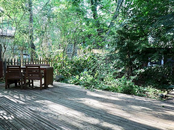 Quiet oasis close to the action ------------------------------------- Fantastic location! Sweet, charming bungalow on a quiet street one block from Schenley Park, featuring a secluded and shaded back yard with a large deck and lush foliage; a spacious master bedroom with a skylight; and hardwood floors throughout. Updated with whisper quiet zoned air conditioning, new roof, new siding, refinished floors, new insulation, new hardscaping, and new landscaping featuring birch, aspen, hydrangea and rhododendrons. New washer, dishwasher, and disposal. Elevation from street provides privacy, views, and quiet. Just a few blocks to Squirrel Hill shops, Schenley overlook, jogging trails, playground, tennis courts, soccer fields, ice rink, golf course, etc. and the 58, 61, 65, 71 and 93 bus lines. Walk or bike through the park to Oakland, CMU, and Pitt.