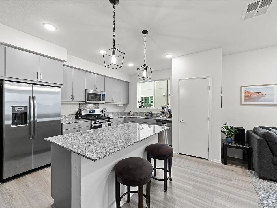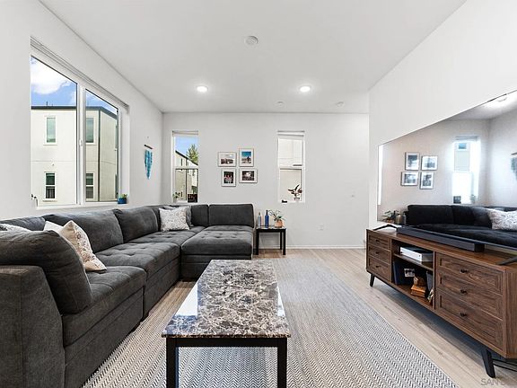Welcome to 5502 Sandcliff Lane #147, a stunning corner end-unit Solmar Plan 2 model home—one of the last model homes sold in the sought-after Playa del Sol community and VA financing approved! This beautifully upgraded residence features 2 bedrooms, 2.5 baths, and a 2-car garage across approximately 1,310 sq. ft. of thoughtfully designed living space. Step inside to an open-concept main level filled with natural light, highlighted by a sleek modern kitchen with stainless steel appliances, quartz countertops, a large center island, and designer cabinetry. The primary suite includes a spa-like ensuite bath with dual vanities and a generous walk-in closet, while the secondary bedroom offers flexibility for guests, family, or a home office. Enjoy smart-home features including smart switches, smart garage door, and smart water heater for modern convenience. The community boasts resort-style amenities—an impressive clubhouse with a state-of-the-art gym, a heated pool complex with spa and hot tub, and two clubhouses (one for everyday use and another available for private events). Ideally located near shopping, dining, entertainment, and top-rated schools, with easy access to the 805 and 905 freeways, this home offers the best of modern South San Diego living—stylish, smart, and community-focused.