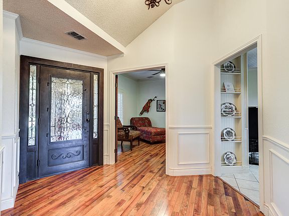 Welcome to this gorgeous four bedroom, two and a half bath home located on a tree-lined street in Castleridge. Sitting on a beautifully landscaped lot with a rear entry garage, this property features a unique floor plan with custom touches that make it truly stand out. Step inside the beautiful iron front door and discover spacious areas filled with natural light, a formal dining room, a newly remodeled guest bathroom, and distinctive features that add charm and personality to every corner. The kitchen boasts double ovens, a walk-in pantry, and a gas cooktop. The expansive primary suite is isolated and features bay windows, double vanities, and a large soaking tub with jets. The fourth bedroom can be used as an office, game room, or flex space. Out back, enjoy your private retreat complete with new turf, mature trees, a pergola, and an above-ground pool that is perfect for summer fun and relaxing weekends. From the rich wood floors to the stylish penny-tiled floor in the powder bath, this home is filled with thoughtful details that set it apart. Recent updates include a new roof in August of 2025, new garage door, new keypad on garage, and a new water heater in 2024.