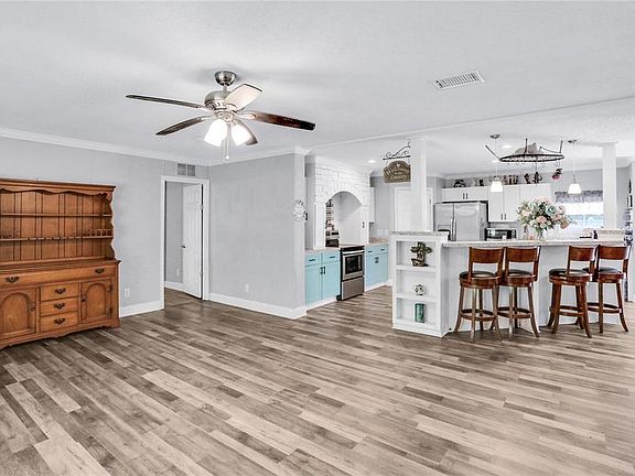 - Interior Features: Ceiling Fans(s), Eating Space In Kitchen, Open Floorplan, Split Bedroom, Walk-In Closet(s), Crown Molding, Thermostat, Built in Features