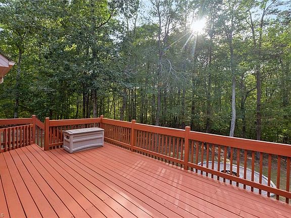 HARD TO FIND BASEMENT home in sought after Oak Ridge! Very private rear yard backs to wood with patio/deck and fire pit area. Main level w/open plan, soaring ceilings, gorgeous red oak flooring and THREE beds on the main level. AMAZING storage in the expansive basement, and a well-kept yard with invisible fence for your 4-legged family members. Two stacked stone fireplaces for those cold winter days plus a home office! A rocking chair front porch completes this remarkable home! OAK RIDGE/NW SCHOOLS!