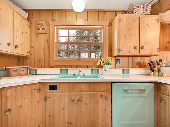 This very special true chalet style cabin is like stepping back in time but with all of the modern conveniences that make life easy. It is the epitome of cabin coziness, built for warm winter evenings by the fire and cool summer evening on the deck. With peak lake views from the upper deck and a covered sunken hot tub on the lower deck you have the best of Serene Lakes. 4 Bedrooms and 2 lovely up to date bathrooms, a laundry/utility room and a large two car garage are everything you need for summer and winter enjoyment. Enjoy remote control forced air heating, rough saw solid wood floors, solid wood doors, wood frame windows and a sunken hot tub. Roof was new in 2014. Oversized garage built in 2013 to match the charm of the chalet style. This home is very special and evokes simpler times and family gatherings. Walking distance to the lake on a large corner lot just waiting for your creative outdoor ideas.