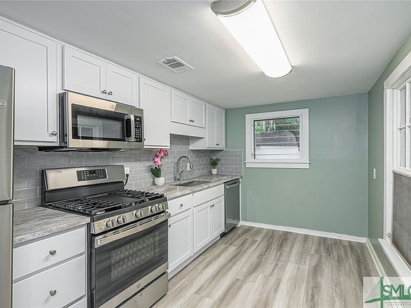 Newly Renovated 2BR/1BA 1174 sqft Coastal Home on Huge 1.3 Acre Lot includes 2BR/1BA Guest House in backyard. Originally built in 1919, this historic Cottage is located in Bona Bella Neighborhood near the Intracoastal Waterway. X Flood Zone. Some of the Most Beautiful Live Oak Trees in all of Savannah create Stunning Canopy over this Expansive 70 ft wide by 772ft deep yard. Main home features Brand New Kitchen w/Quartz Countertops, Stainless Steel Appliances & White Shaker Style Cabinets. New Tub/Shower Combo in Bathroom w/Ceramic Tile Floor & New Vanity. Brand New LVP Flooring in Coastal Gray color throughout. W/D Hookups on enclosed area off Kitchen. 2BR/1BA 721Sqft Guest House features Brand New Kitchen Cabinets & Countertops & Huge Backyard w/Workshop Space. Guest Cottage located behind Main is great for option for Caretaker or Additional Rental for Supplemental Income to contribute to Cost of Ownership & Living Expenses! Nearby Marinas, Shopping, Restaurants, Hospitals & Colleges!