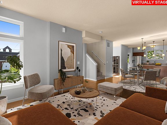 Enjoy easy urban living in a fabulous location! This home, built in 2008, has incredible natural light from its south exposure. Great room floorplan with bamboo floors, and a natural, functional layout. Nice flex space located off of the living / dining area makes a great office or den space. Large kitchen features cherry cabinets, granite countertops, stainless steel appliances, including a Bosch dishwasher, and easy access to the cute fenced back yard. Upstairs, the primary suite features an en suite bathroom and spacious walk in closet. Two additional bedrooms are upstairs, along with a convenient laundry area (2 year old washer dryer included). Downstairs is a huge 2 car tandem garage with lots of extra space for storage. Just a few blocks to Alberta Street, PCC, and Alberta Park. WalkScore 88! TransitScore 86! Turn key and ultra convenient!!