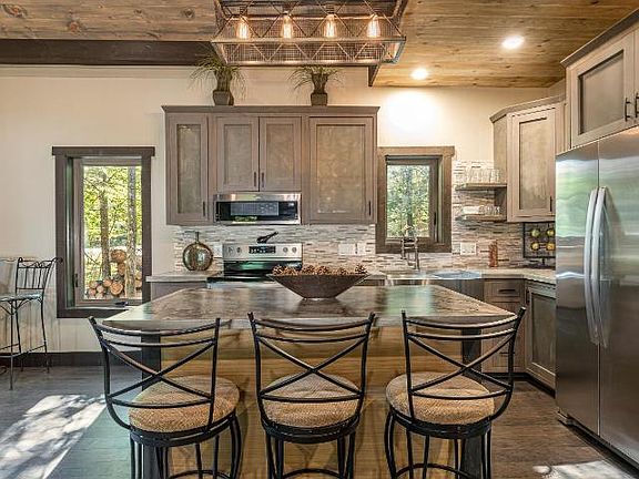 This newly constructed home is a stunning, one of a kind presentation. With custom wood floorings and finishings including Cedar, Pine, Alder, Hickory, Black Walnut, and Rainforest Apitong, the beauty is truly in the details! Main level is open concept and features Livingroom with a free-standing wood stove and dry bar, Kitchen with stainless steel appliances, a spacious island, and Dining Area. Master Bedroom and a Full Bath with Rain Forest Wood Tiling in the walk-in shower are also on the first floor. Sliding barn door leads to Laundry area. Sawmill staircase with cables and wire spindles leads to an open loft bedroom. This is a home where the defining characteristic is attention to detail and quality workmanship!