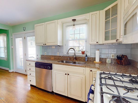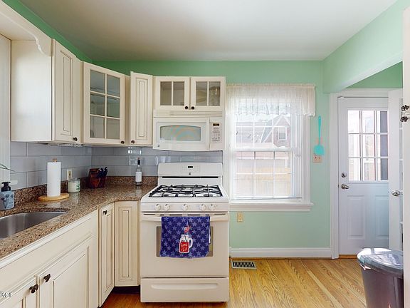 Absolutely adorable and in excellent condition! The spacious kitchen has been upgraded with beautiful glass front cabinets and granite counters with all appliances remaining. A large living room, dining area, primary bedroom with walk-in closet plus an updated full bath complete the first floor. The second floor is a large bedroom with multiple closets including one that's cedar lined! The lower level features a large den and two bonus rooms plus a 2nd full bath. Hardwood floors throughout, replacement windows and doors, recent HVAC and new water heater! Fenced, flat yard with concrete patio and a 600' 2.5 car garage! The bright sunroom off the living room offers additional living space! Neutral decor - just move right in!