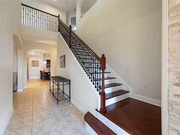 Luxury, lifestyle, and location come together in this stunningly upgraded 5-bedroom, 4.5-bath residence located in the gated community of Legends Bay. Perfectly positioned near Sarasota Bay, IMG Academy, and world-famous Gulf beaches, this home offers the ideal blend of elegance, comfort, and resort-style living. Step inside the soaring two-story foyer to discover refined interiors filled with natural light, engineered hardwood and tile flooring, and detailed craftsmanship throughout. The open-concept design features three private en-suite bedrooms—including a first-floor guest suite—a den, and a formal dining room. The gourmet kitchen is a standout, boasting a natural gas cooktop, premium Bosch & Miele appliances, upgraded fixtures, abundant cabinetry, and a built-in beverage center. The primary suite provides a luxurious retreat with a custom-designed closet and spa-inspired bath. Additional upgrades include refreshed lighting, modern ceiling fans, and a thoughtfully updated interior that feels warm, elevated, and move-in ready. Your private outdoor oasis is designed for relaxation and entertaining. Enjoy a resurfaced saltwater pool, newly added spa with remote automation, a new pool cage, and an expansive outdoor kitchen with stone accents, granite counters, bar seating, a refrigerator, Blackstone griddle, and Green Egg-style smoker—all overlooking a peaceful, private setting. Legends Bay offers premier amenities including a resort-style pool, clubhouse, and a scenic boardwalk leading to a fishing pier on Sarasota Bay. The maintenance-free lot provides lawn care and irrigation, making this a perfect lock-and-leave property. Minutes to IMG Academy, downtown Sarasota, Bradenton, and Gulf beaches—this exceptional home captures the essence of coastal luxury living.