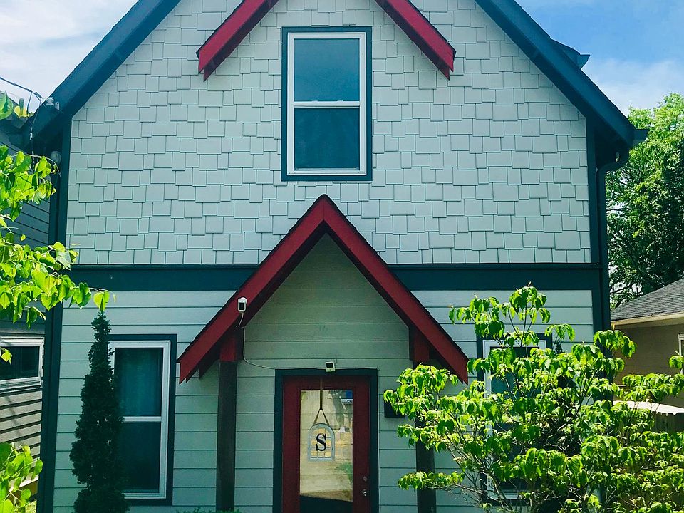 Located in the heart of the hip Nations neighborhood, this stylish 3 bed, 2 bath home features soaring 22ft ceilings and an airy open-concept kitchen and living space. The layout includes a main-level master suite with direct access to a private, fenced backyard perfect for pets or entertaining. Durable stained concrete floors downstairs and hardwood upstairs combine function with charm. Two bedrooms and a full bath upstairs offer separation and flexibility. Come see this modern chalet for yourself! Minimum of 1 year.