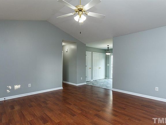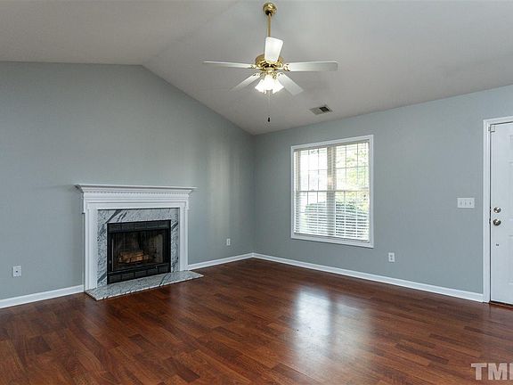 Cozy 3BR/2BA one story home available for sale in Pearl Ridge subdivision in Raleigh. The house features: Beautiful laminate floors, a log fireplace and vaulted ceilings in the Family Room, new vinyl in the kitchen, double door refrigerator, washing machine and dryer, and a large fenced back yard with separate storage. The home is also located in a cul-de-sac.