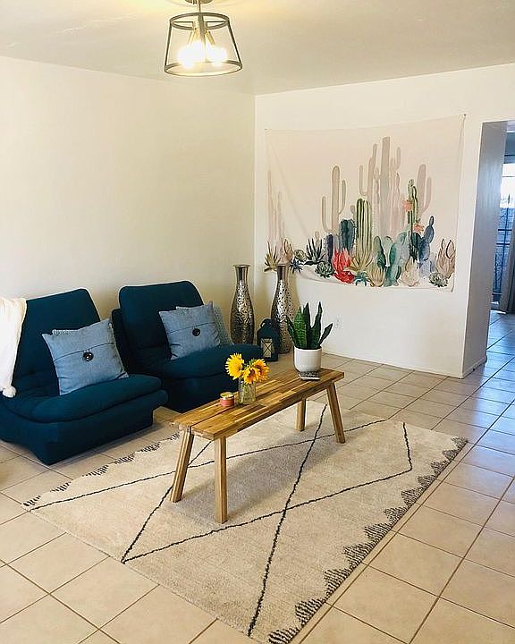 Saturday, January 28, 4:30PM - Home open for touring. Please email agent for video tour. Freshly-renovated apartment in Harlan Heights, one of Tucson's most convenient and tranquil midtown neighborhoods. Stylish upgrades include: newly-painted white interior walls; brand-new, durable, sand-color porcelain flooring throughout the apartment; remodeled kitchen sink and countertops; modern vanity set in the bathroom, with a retiled shower and elegant shower curtains; and thick, biscotti-beige drapes on the east and west windows to block out harsh sunlight. Equipped with all-new appliances -- refrigerator, stove, washer and dryer. Each unit in the complex enjoys access to a private back patio, a spacious shared courtyard, covered off-alley parking spaces, and additional uncovered parking in the front and back. Located just minutes from popular destinations such as Park Place, Costco and Trader Joe's. UTILITIES: Tenant pays for ELECTRICITY and GAS. Water, trash and sewer are covered. RESTRICTIONS: No smoking. Cats allowed.