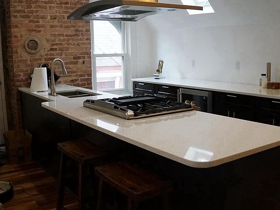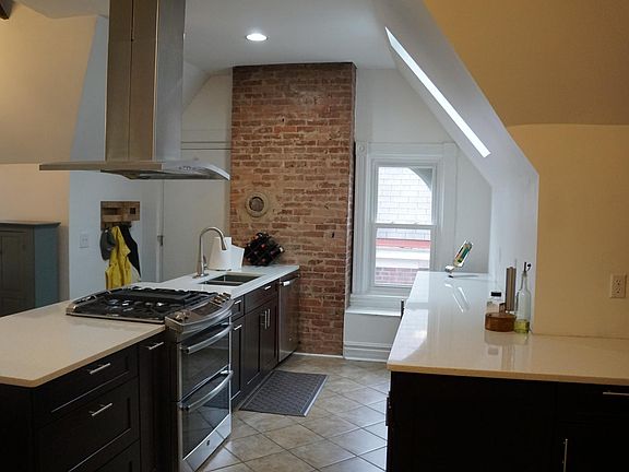 This apartment has it all - renovated in 2014 with high end finishes as the owners' residence. Fully loaded kitchen with stainless steel appliances, dishwasher, double oven, beverage center, quartz counter tops, soft-close cabinets awaits you here. The ~10 ft ceilings, 4 skylights, new windows, exposed brick and wooden beams, and hardwood acacia floors will charm you and your guests, as will the gas fireplace. The bathroom will be your own spa with a refinished clawfoot tub, double vanity and walk-in shower. The bedroom has two dormers for dressers and a full closet - lots of room! Free laundry onsite in basement, 1 off-street parking space, lots of storage in the basement, shared (massive) deck on the back of the house, and very large shared backyard. So much here - apartment will go fast. Available July 1, 12 month lease preferred, no pets, no smoking. Rent is $1250/month, 12 month lease preferred. Additional utility charge ($200 + $45/person per month) includes includes gas (heat), water/sewer, lawn/snow service and trash. Electric and all other utilities paid by you. Rent is $1250/month, 12 month lease preferred. Additional utility charge ($200 + $45/person per month) includes includes gas (heat), water/sewer, lawn/snow service and trash. Electric and all other utilities paid by you.