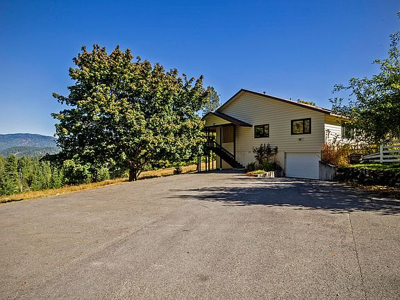 Beautiful property with amazing views of the surrounding mountains and features 4 bedroom, 3 bathrooms, large 2 bay shop, and many outbuildings. This two story home has a spacious living room with a large rock fireplace, ceiling fan, wood floors, and sliders that allow access to an expansive wrap around deck. The kitchen has a breakfast bar, abundance of cabinets, and a view into the formal dining room that is large enough for guests, friends, and or family dinners and is completed by a wet bar with cabinets and a sink. All bedrooms are spacious with carpet, nice sized closets, and large windows allowing plenty of natural lighting. Large 40X60 shop with a separate exit, windows, and 2 bays.