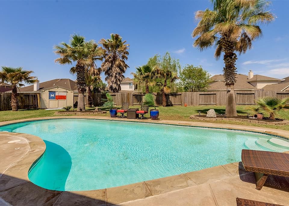 Welcome to your new home with 5 bedrooms 2.5 baths, situated on a generous sized lot and cul-de-sac street. With a fantastic sparkling pool and oversized covered patio, this home will be great for summer fun, and entertaining all year long. Interior features include an island kitchen with a breakfast nook, 5 large bedrooms, walk-in closets, and a game room. Relax in your master retreat that includes a master bath, with dual vanities and a separate tub and shower. All conveniently located within minutes of Pearland shopping and dining.