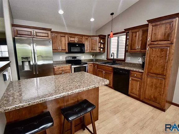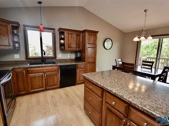 Stunning 4 bedroom, 3 bathroom home situated in SW Sioux Falls with tons of curb appeal and an amazing lot! Upon entering you'll appreciate the spacious foyer and vaulted ceiling leading you to an open living space. The kitchen has birch cabinetry, hardwood floors, and a breakfast bar. The dining area has a slider leading to the deck overlooking the breathtaking backyard and view. The main level is complete with a master bedroom with an en'suite, walk-in closet for her and a double closet for him, an additional nice-sized bedroom, and a full bathroom. Step down to the lower level walk-out family room with a gas stone fireplace, 2 additional bedrooms, and a bathroom complete with a custom tile shower. An oversized 3 stall garage with plenty of storage space. Outside you''ll find your own private oasis featuring a patio, beautiful landscaping, privacy fence, fire pit with a stone patio and pergola all overlooking the peaceful water and green-way. This home is a must see!