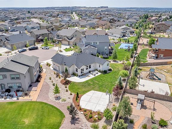 Welcome to this stunning 5-bedroom, 3-bathroom home nestled in the sought-after Wolf Ranch neighborhood. Step inside and be greeted by the timeless elegance of the tastefully upgraded, water proof, laminate flooring that spans throughout the common living spaces. The heart of the home is the gourmet kitchen, adorned with pristine white cabinets, an expansive island and complemented by sleek stainless steel appliances. Whether you're hosting a family gathering or preparing a gourmet meal, this kitchen is sure to inspire. The main level also features spacious living and dining areas, perfect for entertaining guests or simply relaxing with loved ones. Downstairs, the basement offers additional living space with extra bedrooms that can serve as guest quarters or home offices, complete with 9 foot ceilings. Entertain in style with a fully equipped wet bar, ideal for hosting unforgettable gatherings and celebrations. Outside, the oversized lot is a true gem, showcasing its very own basketball court—perfect for friendly games and outdoor activities. Incredible attention to detail has been taken in every aspect of the care and design of this truly incredible lot. Located at the end of a quiet Cul-de-sac, this home provides a peaceful setting to relax. Wolf Ranch beckons with its scenic community lake, Wolf Lake, perfect for recreational activities including fishing, paddle boarding, kayaking, walking and more. Wolf Ranch is complete with a community club house and a sparkling pool, ideal for leisurely afternoons. A BRAND NEW clubhouse is coming soon, with even more amenities! Enjoy the nearby parks, walking trails and open spaces, providing endless opportunities for outdoor activities. Award winning District 20 schools ensure exceptional education, while close proximity to shopping and amenities adds convenience to daily life. Embrace the opportunity to own a home where luxury meets community in the heart of Wolf Ranch. Schedule your private tour today.