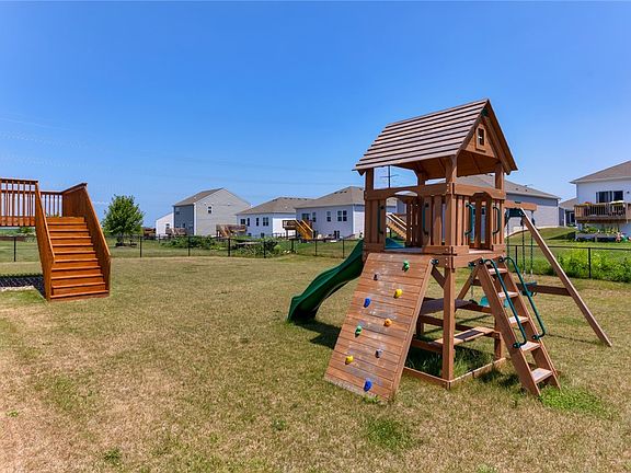 NEW 2022 SOLAR PANELS INCLUDED! 4 Bed/3 Bath Ranch w/2,633sqft finished living area. The open living room & kitchen area w/9' ceilings lg windows offer great natural light. The living room has a trey ceiling w/wood beams & gas fireplace w/shiplap. Mosey on over to the kitchen and enjoy beautiful cabinetry w/soft close drawers/doors & tiled backsplash, a lg pantry, & drop zone w/built-ins. The owner's suite has an ensuite bathroom w/tiled floor & floor to ceiling tiled shower, dual vanity & walk-in closet. Two more bedrooms, full bath & laundry room complete the main level. The LL offers 9' ceilings & daylight windows, newly built fireplace w/shiplap, walk up wet bar w/floating shelves & full size fridge. The LL also features a bedroom, full bath & ample storage. Numerous upgrades that you don't get in a new construction home including; chain link fence, 220v Garage Outlet for Charger, upgraded front door, window coverings, stubbed for electric or gas stove and all appliances included!
