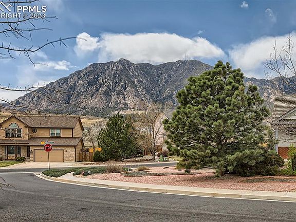 CHARMING HOME in Award Winning School District 12 with amazing Mountain Views and huge fenced back yard! AND it is just blocks from Pinon Valley Elementary and neighborhood park for the Littles. THIS HOME HAS IT ALL!!! Enter into the spacious vaulted Living Room with wood burning fireplace and mountain views out the front. The open floor plan has the Living Room opening to the Dining Room and Kitchen. You'll find granite and stainless appliances here, including a new refrigerator. And don't miss the enormous pantry to keep everything well organized. A great deck features beautiful night lights and looks out over an amazing back yard with room for anything you desire... A fully finished basement has a great Family Room large enough for television and games/gym equipment and a 4th bedroom and bath. Upstairs you'll find a large Master Bedroom with private bath and more incredible mountain views. In addition there are 2 more bedrooms, a bath and the laundry area. NEW Radon system in 2020. NEW Class 4 Hail Resistant Roof in 2019. NEW garage door opener in 2021. What a GREAT VALUE in this Outstanding and Conveniently Located Neighborhood, close to shopping, Fort Carson and downtown!