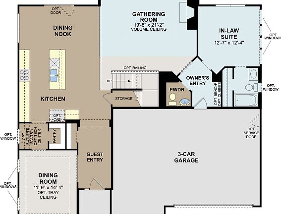 This 2-story home boasts over 4,700 square feet, 5 bedrooms, and 3.5 bathrooms. A covered porch welcomes you into the guest entry where you'll find a formal dining room off the entrance. The entry hallway then leads into the open kitchen, dining nook, and gathering room with a volume ceiling and a fireplace. An in-law suite is on the opposite side of the gathering room. All of the bedrooms are located on the second floor. Your owner's suite is in its own corner of the home and features a tray ceiling, an en-suite bathroom, and a large walk-in closet. You'll find 3 secondary bedrooms, a full bathroom, and the laundry room down the hall.