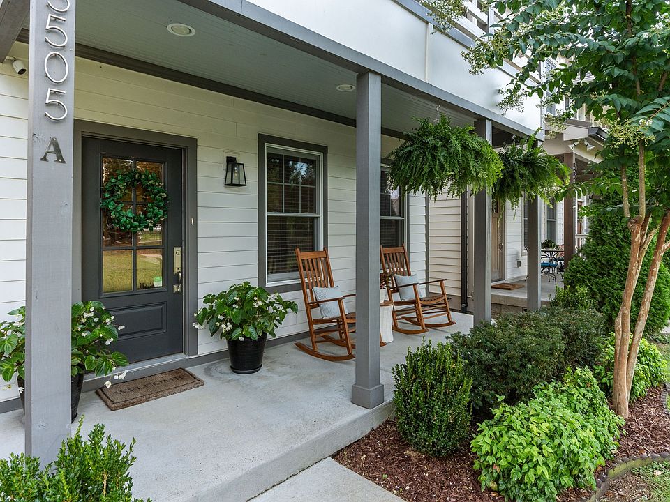 This stunning craftsman-style home is the perfect blend of style and convenience! Nestled in the heart of The Nations, this exquisitely built property features a sprawling open-concept floor plan on main with three sizable bedrooms, each featuring a spacious ensuite bath and a generously-sized closet. Other notable interior features include luxe upgraded hardware, finishes, and fixtures throughout, soaring ceilings and beautifully finished 4-inch red oak hardwoods throughout, separate laundry/utility room, stainless appliances, custom red oak floating shelves to match flooring, and much more! Lovely outdoor space features a large covered porch (main) & balcony (2nd floor) in front, meticulously maintained yard, and a massive deck in back. Private driveway in rear w 2 covered parking spots.
